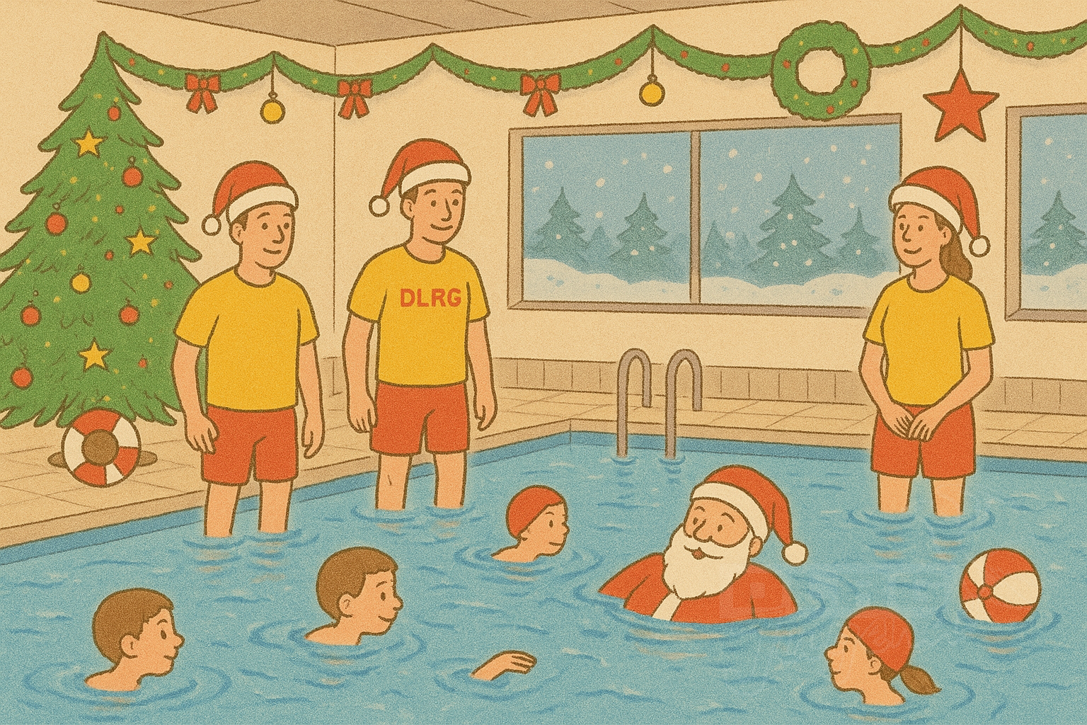 Auch in diesem Jahr läd unser Jugend unsere Schwimm Kinder herzlich zum traditionellen Weihnachtsschwimmen ein. Gemeinsam möchten wir mit Spiel und Spaß in eine festliche Stimmung eintauchen und uns auf das bevorstehende Weihnachtsfest einstimmen. Das Weihnachtsschwimmen findet für unsere Dienstagskinder am 16. Dezember 2025 und für unsere Donnerstagskinder am 18. Dezember 2025 statt. Die Anfänger und Seepferdchen sind jeweils von 18:30 bis 19:15 Uhr im Wasser, während die Teilnehmenden der Leistungsstufen DSA Bronze, Silber und Gold sowie die Juniorretter von 18:30 bis 20:00 Uhr schwimmen. Die regulären Rettungsschwimmkurse sind von der Veranstaltung nicht betroffen und beginnen wie gewohnt um 20:00 Uhr. Wir freuen uns auf zwei fröhliche, vorweihnachtliche Schwimmabende mit euch!